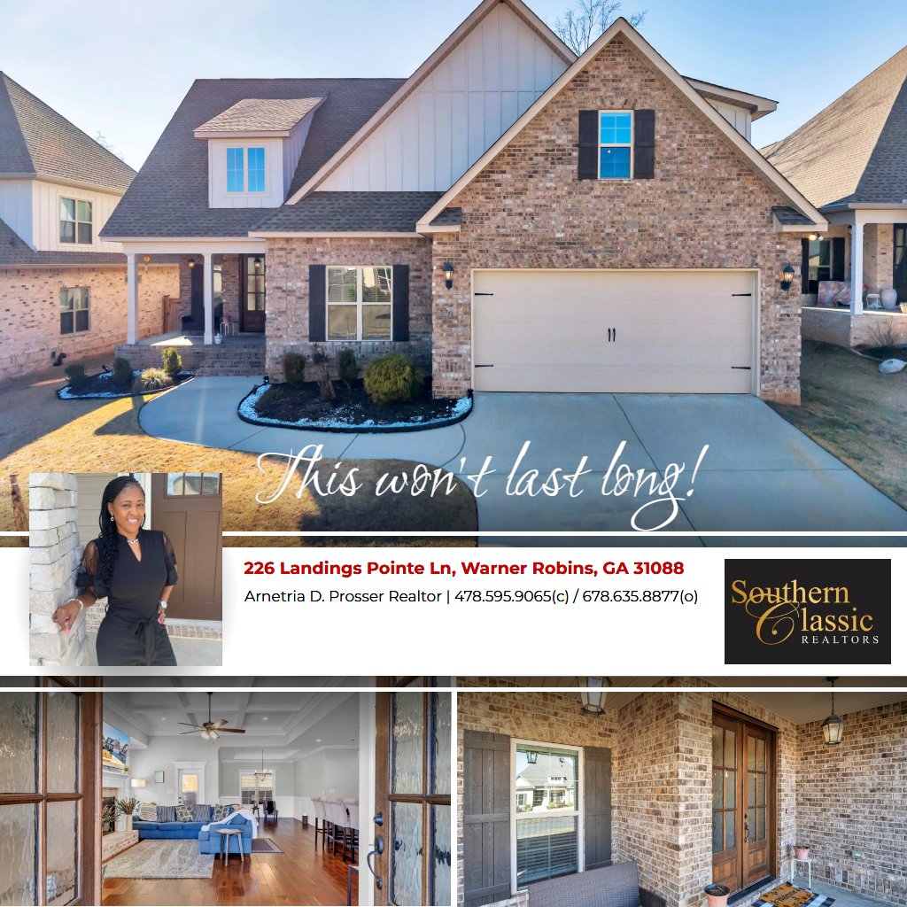 The owner’s suite is designed for comfort and luxury, featuring dual vanities, a walk-in closet for all your storage needs, a tiled shower, and a separate bathtub for enhanced relaxation. Located just steps from golf courses and minutes from Robins Air Force Base. This home offers both convenience and lifestyle. Fresh paint in two of the bedrooms. The property is being Sold-AS-IS. Schedule your tour today!
