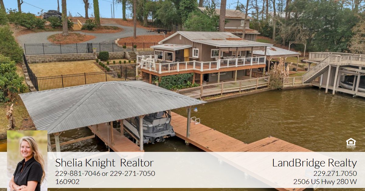 Southern Charmer on Lake Blackshear!! This compact two-bedroom,one-and-a-half-bathh cozy cabin is a MUST-SEE!!! With breathtaking views of the lake and sunsets galore, this quaint beauty on a large lot is ready to give you just what 2025 dreamed up! Much sought after south end of Lake Worth County, Swift Creek offers super clean, deep water... skiing, boarding, boating, and floating are all dialed in! The impeccable landscaping with iron fencing, grass courtyard & exterior living space is what lake life is all about!! Interior rustic wood floors and ceilings, relaxing layout, old school Dutch door leading to side porch, nice double boat slip dock, and basement room & bathroom that is currently being used as storage could possibly be utilized to give more living space, almost a half acre with over 100 feet on the water ... This home has summertime written all over it!! Call TODAY for a private showing!!